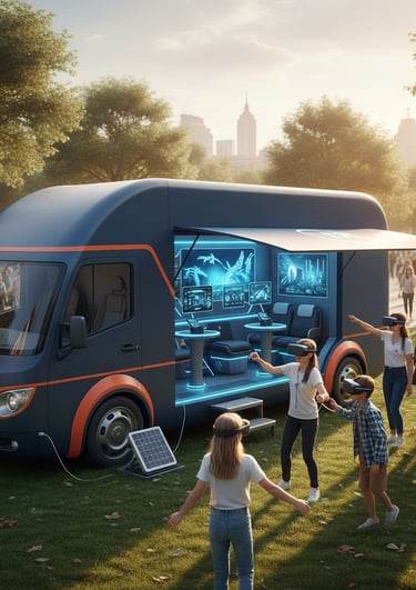 Få en komplet VR-oplevelse leveret direkte til dig, skolen, institutionen eller firmaet. Mobilt VR er fleksibelt, nemt at booke og perfekt til undervisning, teambuilding eller sjove aktiviteter. Vi sørger for opsætning, introduktion og support hele vejen.