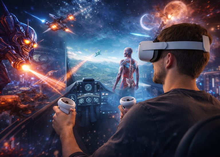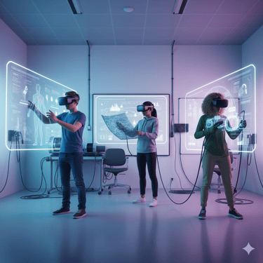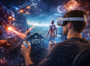 Virtual Reality omslutter brugeren i et fuldt digitalt univers, hvor den fysiske verden træder i baggrunden. VR bruges til alt fra underholdning og spil til træning og undervisning, hvor fokus, nærvær og oplevelse er i centrum.