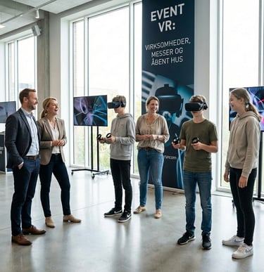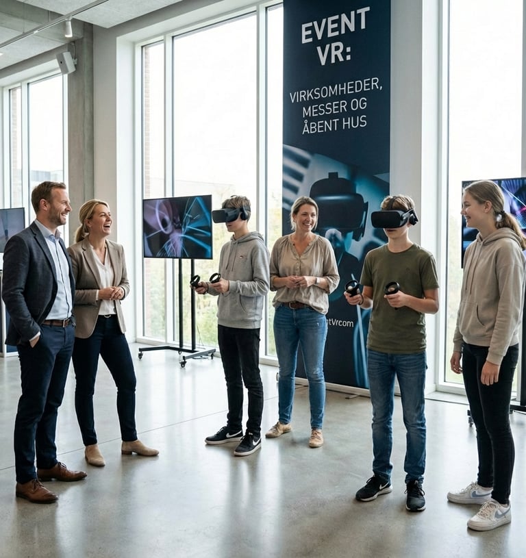 Event VR er designet til virksomheder, messer og åbenthus. Deltagerne får introduktion, tilpasset målgruppen. Vi sørger for alt – fra opsætning til afvikling – så du kan fokusere på gæsterne.
