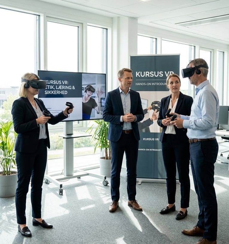 Kursus VR er målrettet undervisere, pædagoger og fagpersoner, der vil lære at bruge VR i praksis. Du får hands-on VR introduktion med fokus på etik, læring og sikkerhed og det kan afholdes hos jer.